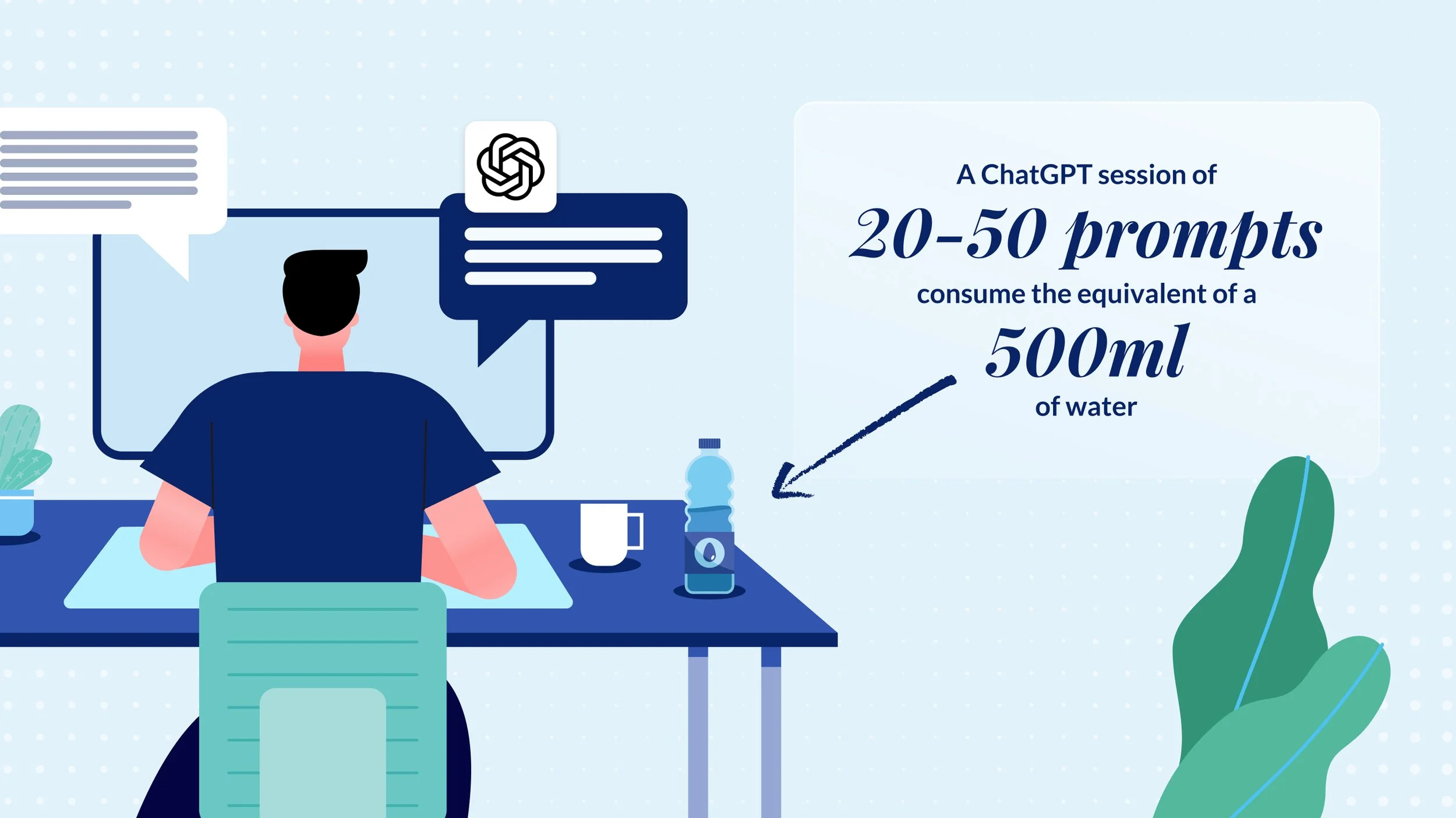 According to a 2023 study* from UC Riverside, a typical ChatGPT session of 20–50 prompts consumes the equivalent of a 500ml bottle of water. That doesn’t seem too bad, right? Until you multiply that by the millions of people that talk to ChatGPT daily. Projections show that by 2027, AI systems may consume up to 6.6 billion cubic meters of water every year. That’s enough to sustain half of the UK for a whole year!